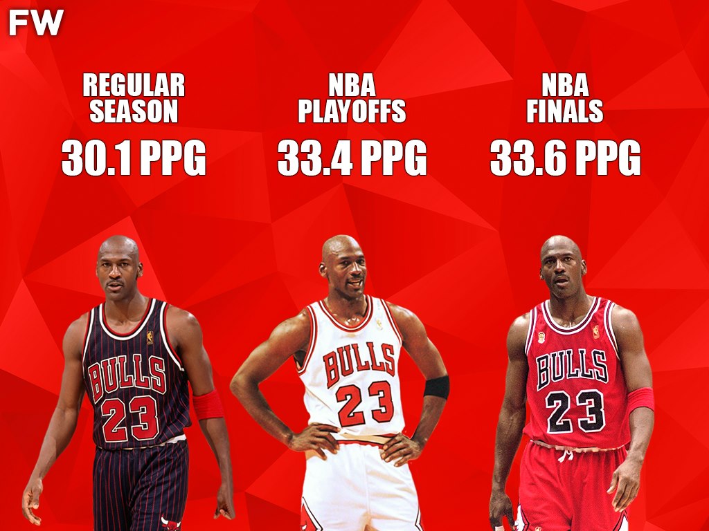 In the regular season, playoffs, and Finals, MJ has the highest point-per-game output of anyone in the league at 30.1, 33.4, and 33.6, respectively. He holds the record for points scored in a playoff game with 63, the most 50 point games in the playoffs, and most 40 point games in the playoffs MJ never shot under 40% in the finals, didn’t lose 3 games in a row for 8 years and played all 82 games 9-times in his career. The guy was just unstoppable.