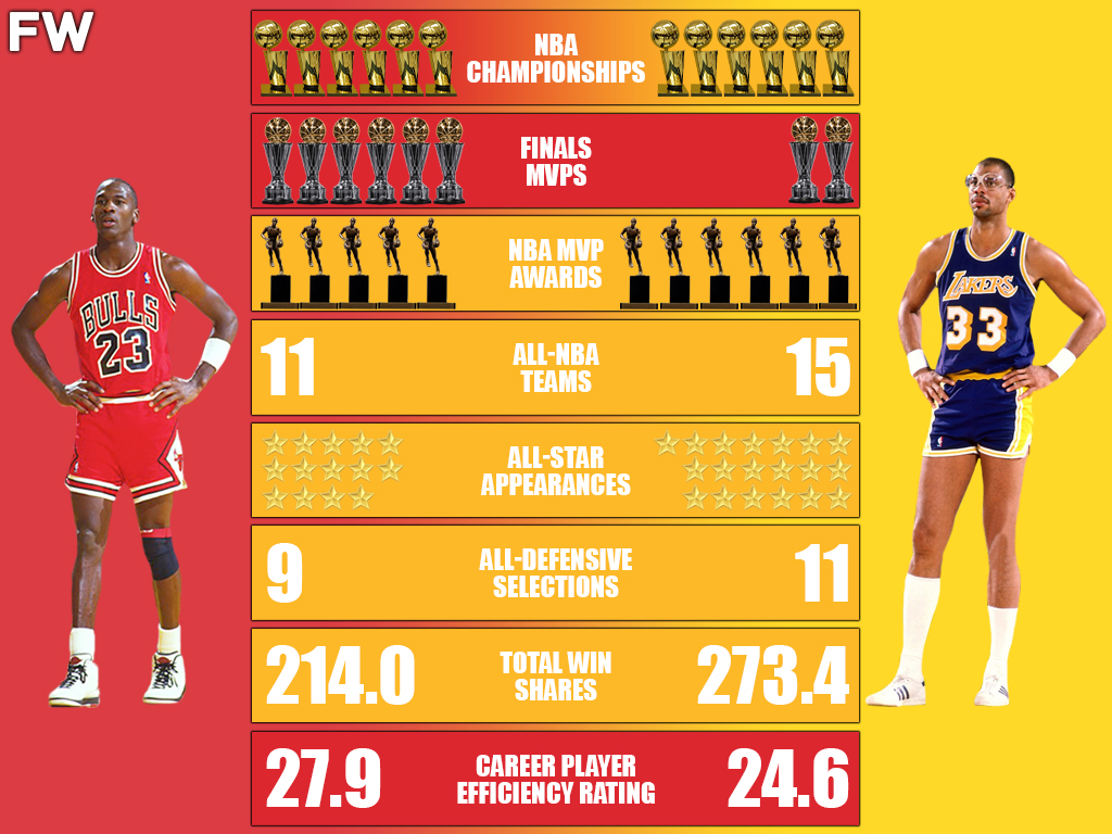 This is the career comparison between Michael Jordan and Kareem Abdul-Jabbar.