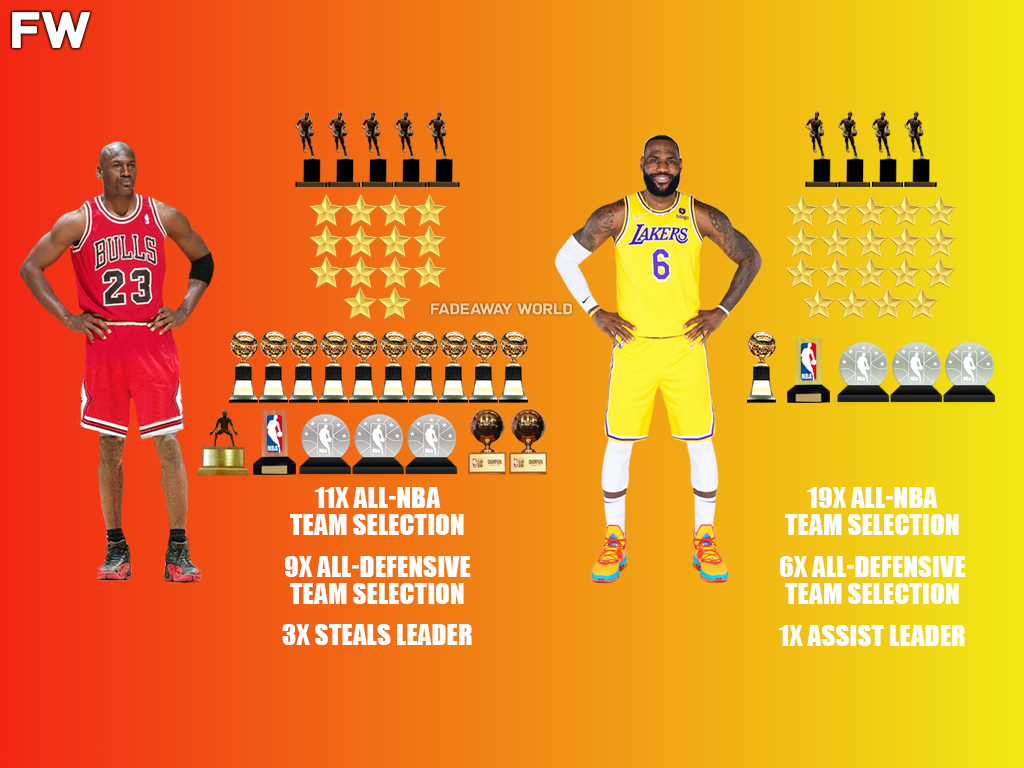 In scrutinizing the careers of Michael Jordan and LeBron James without placing emphasis on championships, Michael Jordan’s advantage in individual accolades becomes starkly apparent. Jordan’s five MVP Awards, 14 All-Star selections, 11 All-NBA Team nods, and Defensive Player of the Year honor surpass LeBron James in terms of sheer variety and depth of achievements.