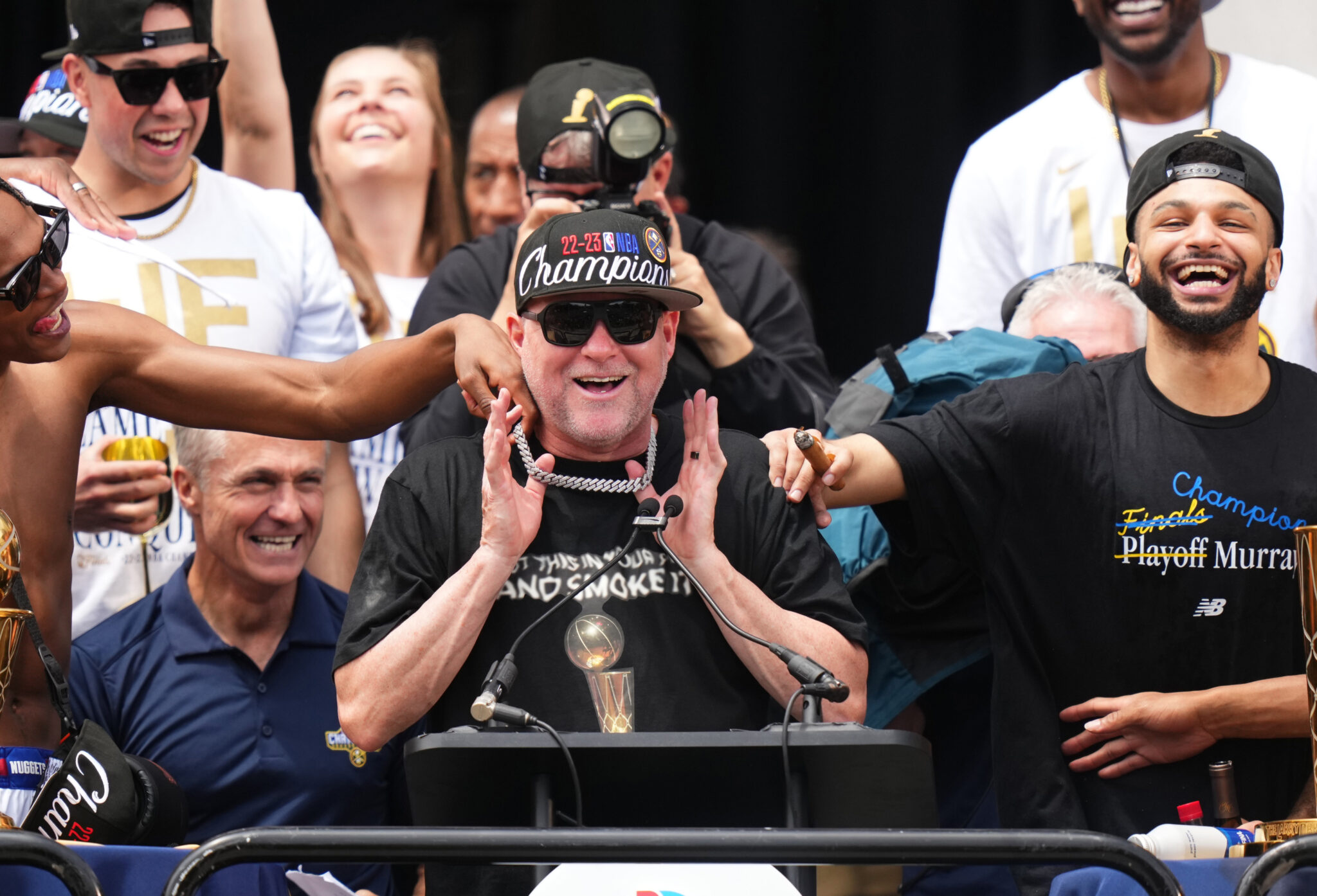 “I’ve got a crazy idea man. I am a little crazy and a little emotional, but let’s do this shit again. Let’s do this again. I want to be on another float, I want to come down the f***ing parade, sorry for my language. Excuse me. I want to experience this again because this city, this franchise, these fans, they deserve that. So, let’s go Nuggets, I love you guys, and let’s go celebrate.”