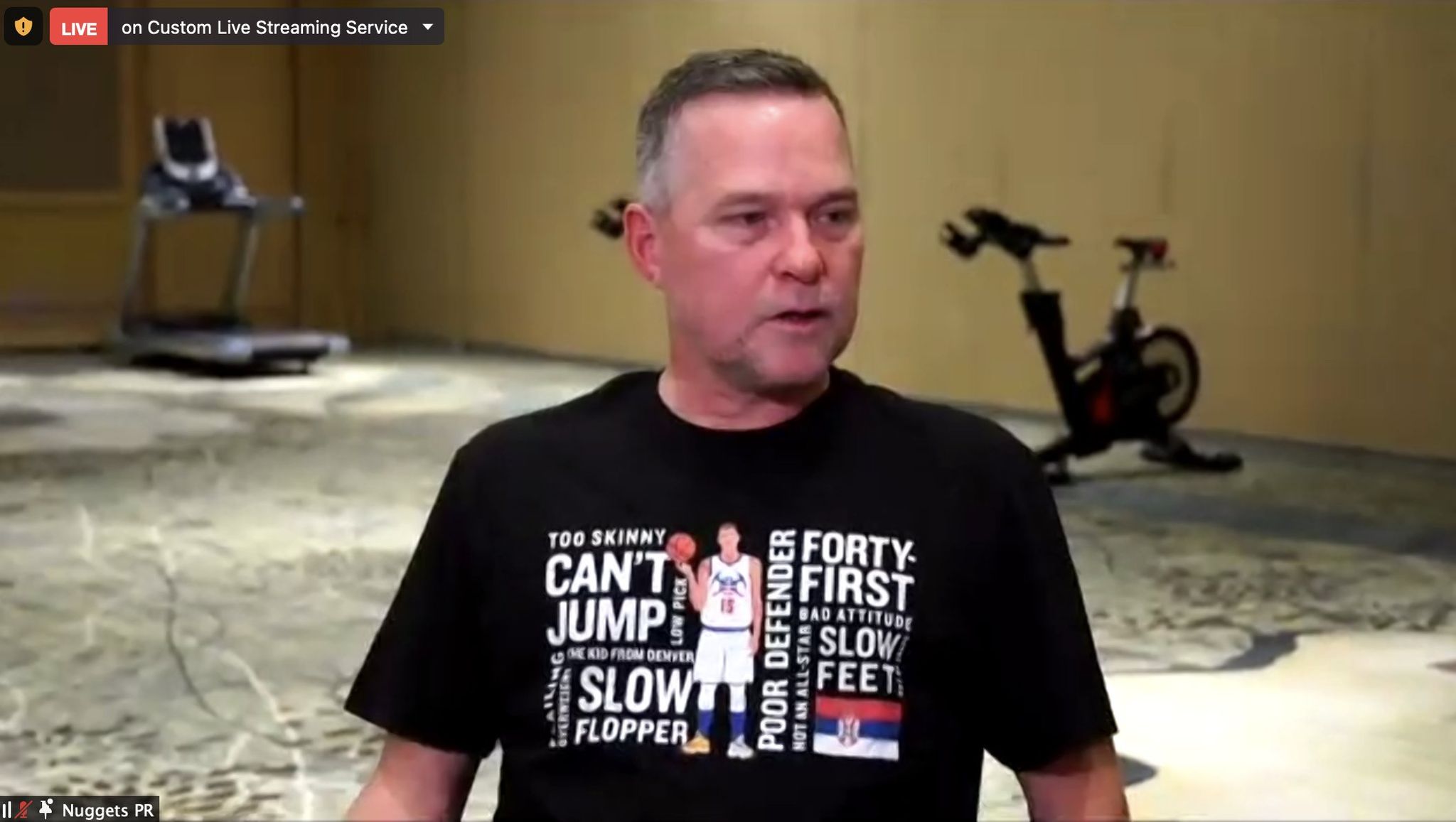 Michael Malone Wears Shirt Showing All The Criticism Nikola Jokic’s Received: ‘Can’t Jump, Slow Flopper, Poor Defender’