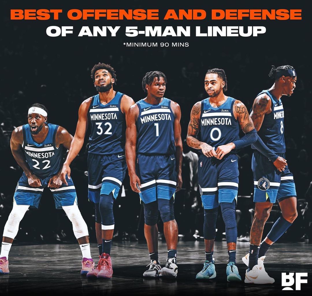 In fact, the Timberwolves are playing so well that one of their starting 5 lineups rank at the top of the pile in both the offensive and defensive ratings for the season. As posted on Instagram by “Basketball Forever” these numbers are only applicable for the 5-man lineups that have at least played 90 minutes together.