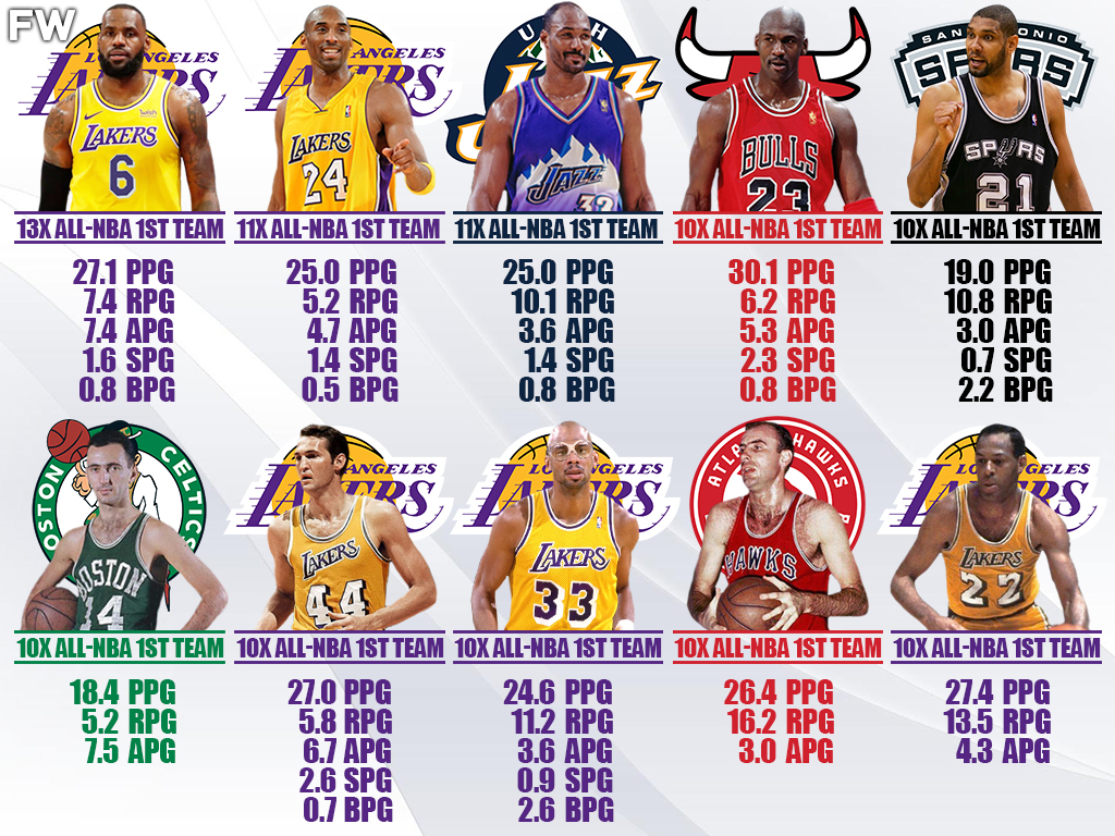 1. LeBron James – 13 All-NBA First Team Selections