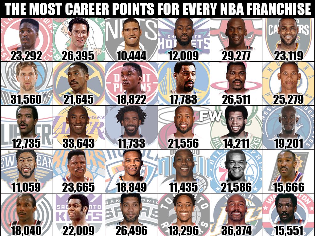 However, there have been some outstanding ballers that have been able to write their name on the history books by committing to a lifetime of getting buckets wearing the same jersey. Today, we’re going to talk about the players with the most career points for every franchise: