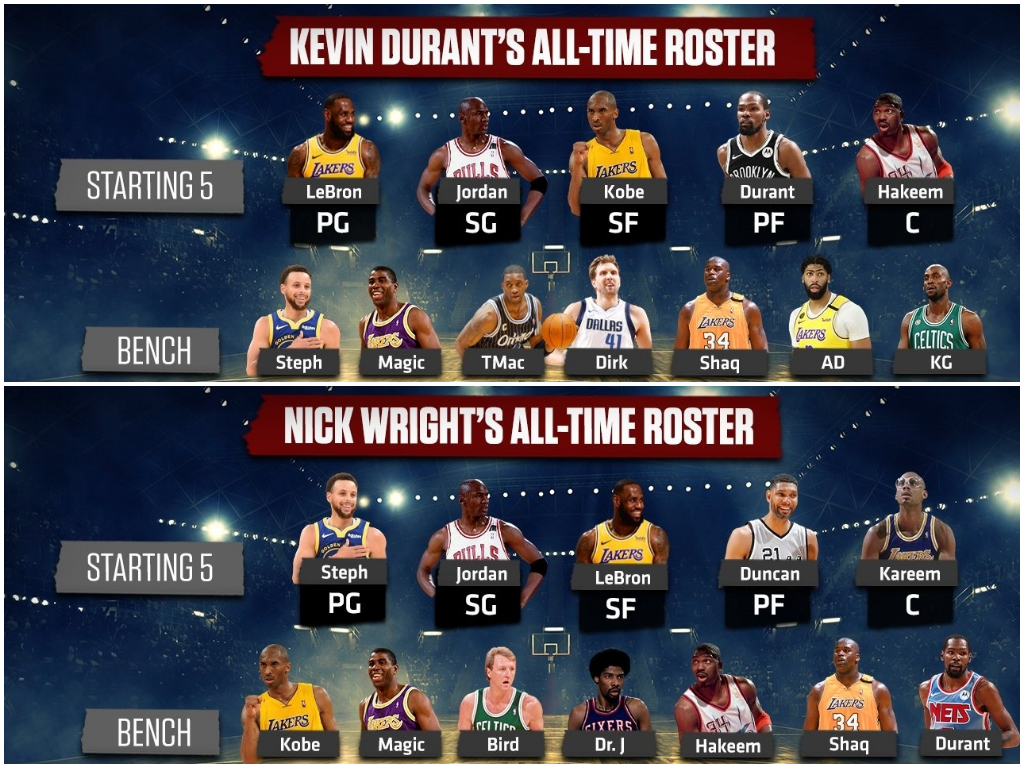 On First Things First, FOX Sports analyst Nick Wright and Nets superstar Kevin Durant assembled their own “dream teams” before comparing the finished products. It sparked some conversation on Twitter.