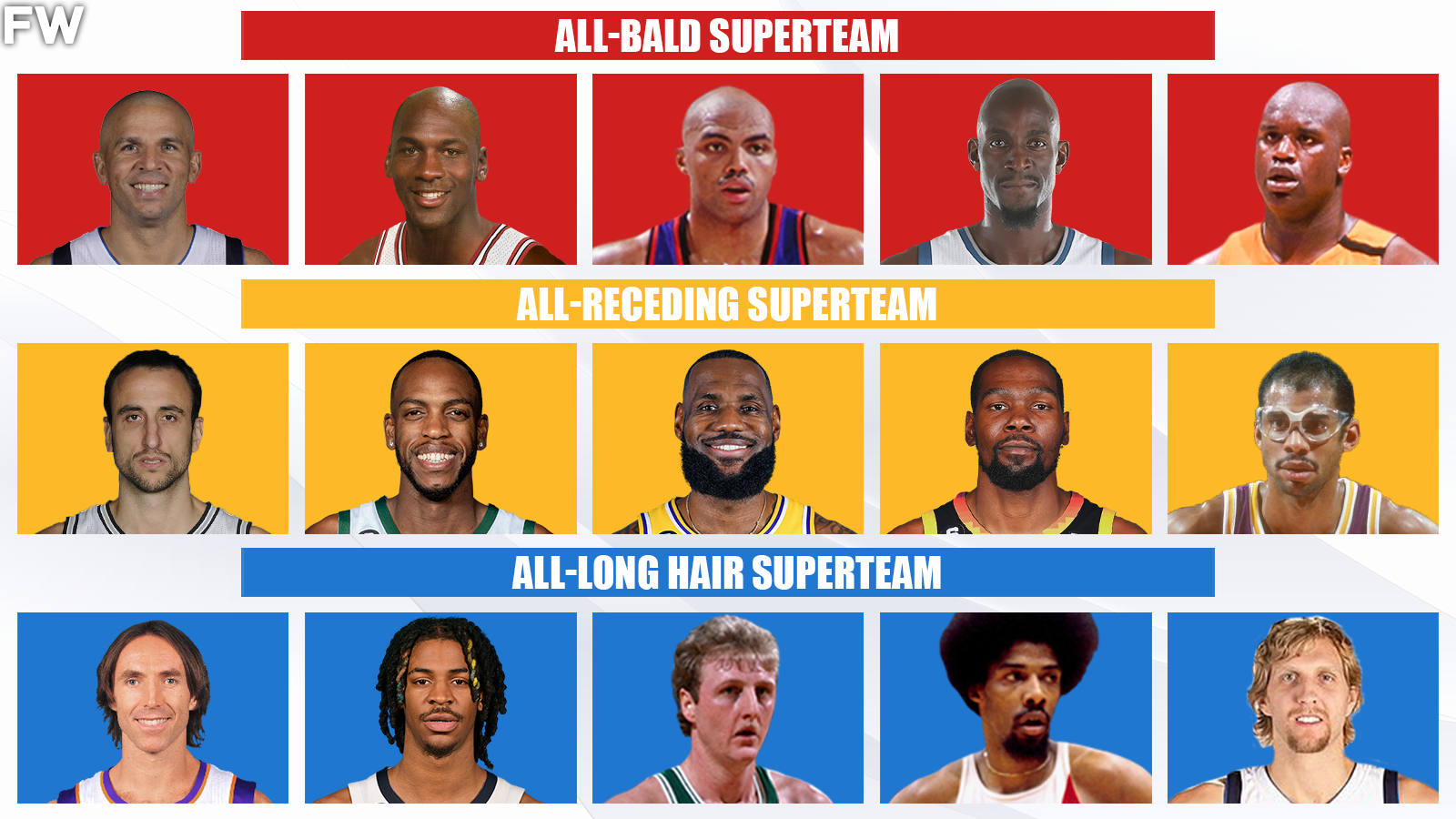 The post featured three different 5-man lineups featuring players with different styles of hairstyles. The lineups in question had all-bald, all-receding, and all-long hair players. Here’s what fans thought about which of the superteams would be victorious if there was a hypothetical matchup between them.