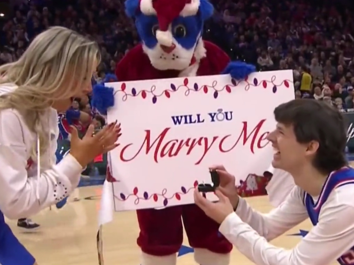 The Philadelphia 76ers had a great Friday night, as they beat the Los Angeles Clippers at home in a game that made Kawhi Leonard mad at his teammates and head coach while bringing so much joy to the Sixers. In the middle of this game, a cheerleader starred in a huge moment when her boyfriend proposed to her with the help of the team’s mascot.