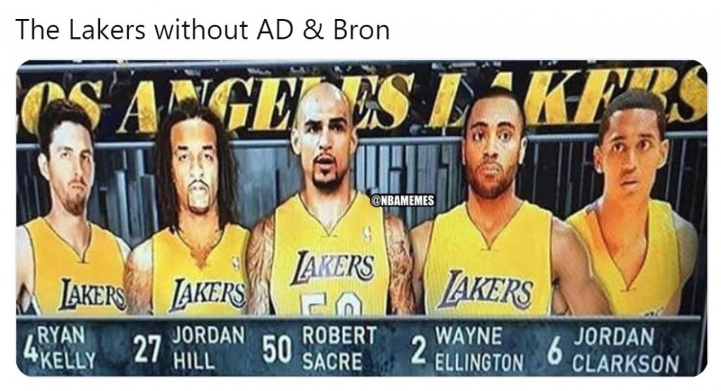 NBA fans have started to joke about them and their struggles and NBA Memes used an old photo from the worst years they lived during the 2010s. At some point, they had a starting lineup of Ryan Kelly, Jordan Hill, Robert Sacre, Wayne Ellington, and a young Jordan Clarkson, who blossomed into a great player after leaving the purple and gold.