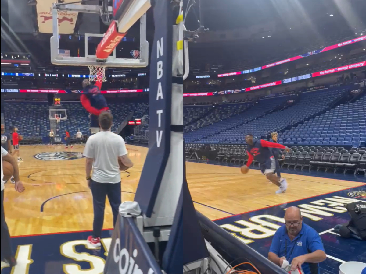 Zion has been ruled out all season with knee injuries but is expected to return soon. Many believe his weight has created a whole host of knee issues for the explosive dunker that Zion is. Despite not being able to play, Williamson can still soar through the air, as his latest practice clip proves.