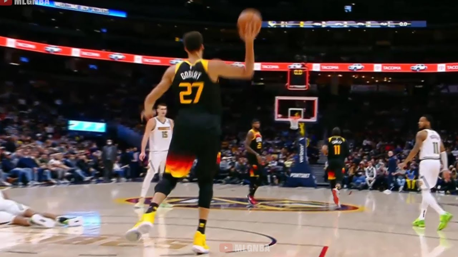 With the first half of the game coming to an end, Bones Hyland attempted a shot that the Jazz successfully defended. The ball ended up in Rudy’s hands and he hurled it from behind his own free-throw line, unbelievably managing to bank it in. Everyone in the arena celebrated but it was clear that the center didn’t get it off before the clock expired.
