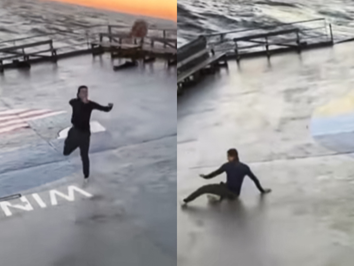 A basketball fan with the username connor_durant on TikTok posted a video of him trying to score a basket on a ship while being surrounded by huge waves.