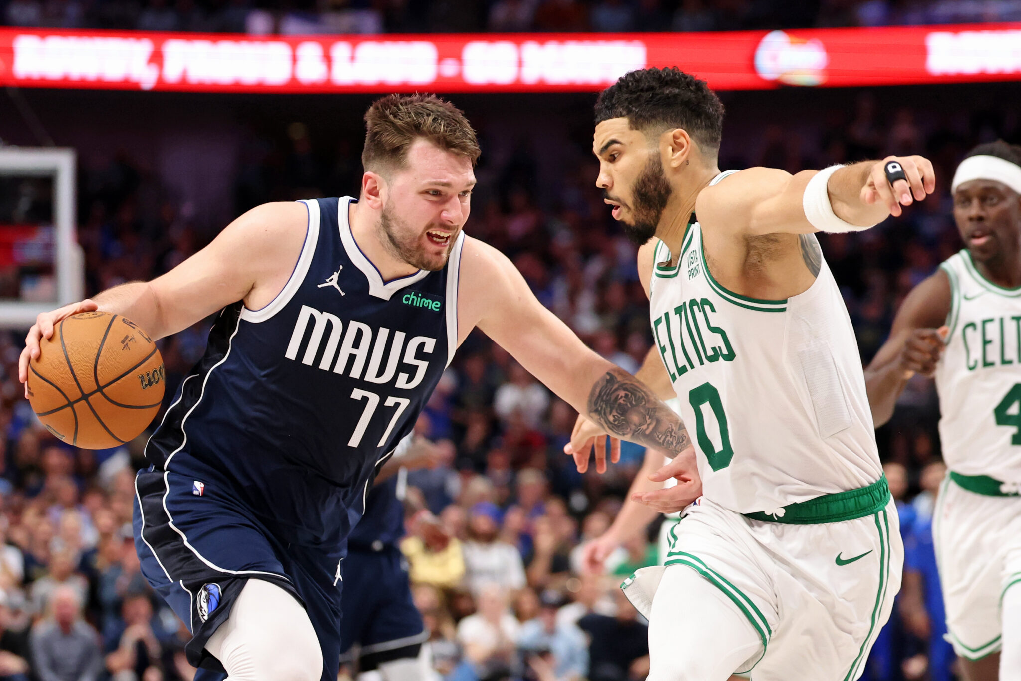Luka averaged 29.2 points, 8.8 rebounds, and 5.6 assists in the 2024 NBA Finals against Tatum’s Celtics, while Tatum averaged 22.2 points, 7.8 rebounds, and 7.2 assists on a paltry 38.8% from the field, leading to teammate Jaylen Brown being awarded Finals MVP.