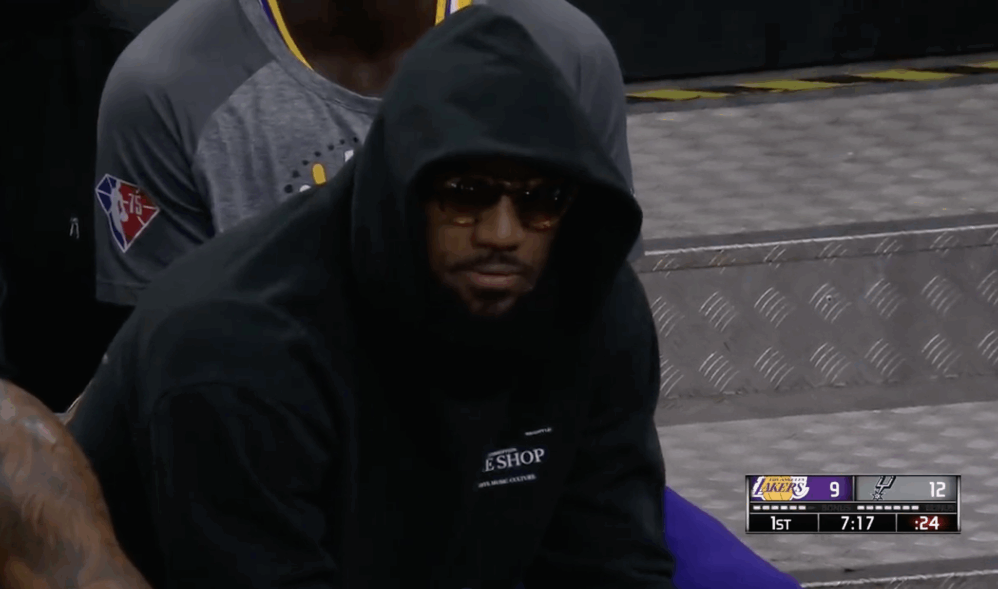 Bron going incognito eating popcorn on the Lakers bench 😂 pic.twitter.com/KsIjg5PF7k