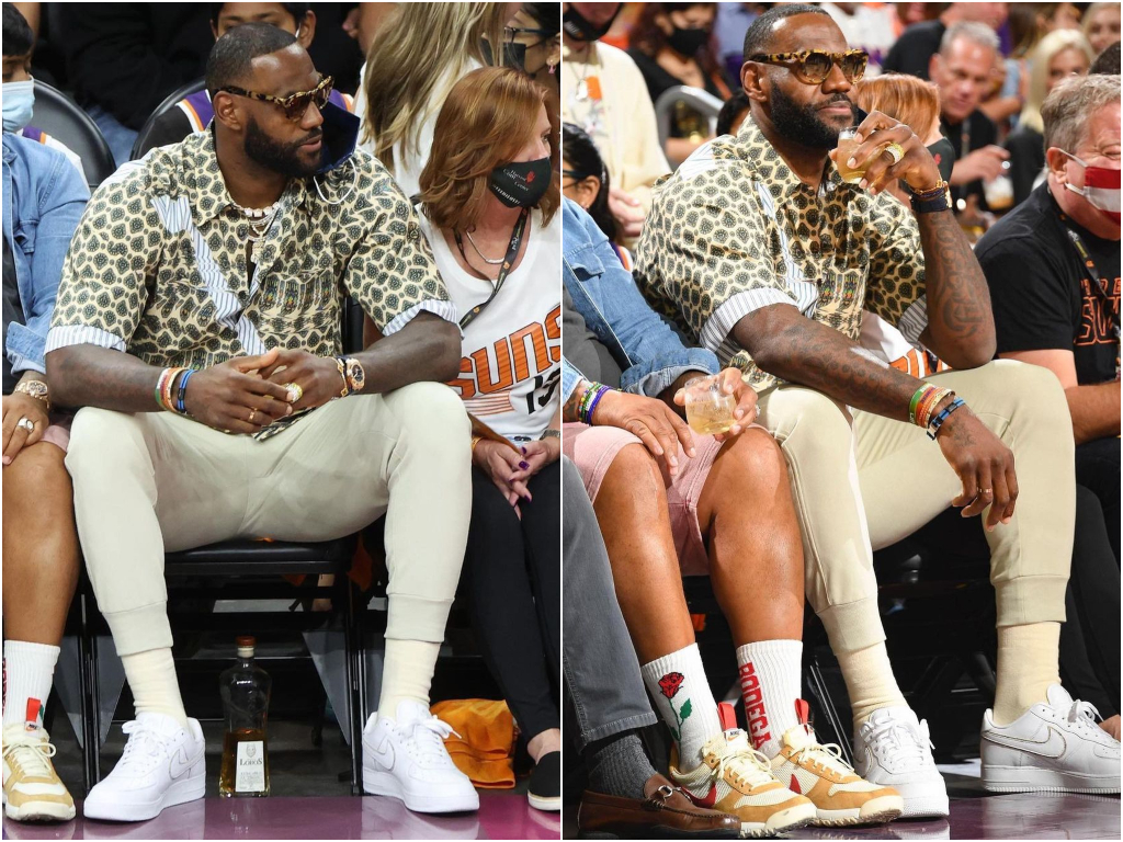 He supported his long-time friend Chris Paul, but people still found a way to make this all about LeBron. The King managed to get a bottle of his Lobos 1707 tequila, “hiding” it under his court-side seat.