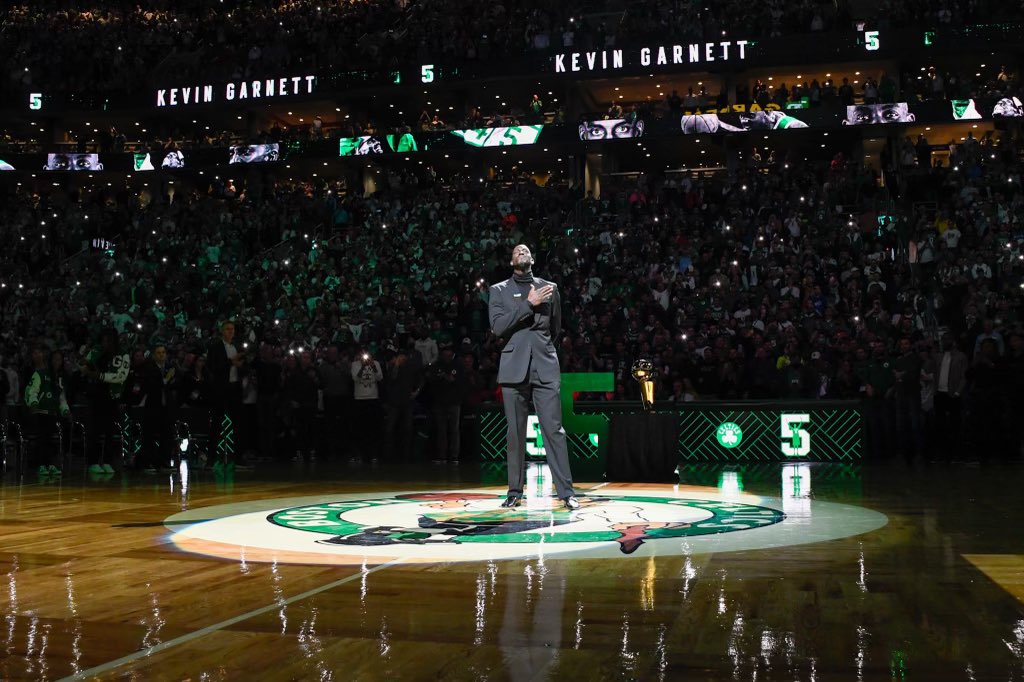 On Sunday evening, Garnett was the center of attention in Boston again, as the Celtics honored him with a jersey retirement ceremony.