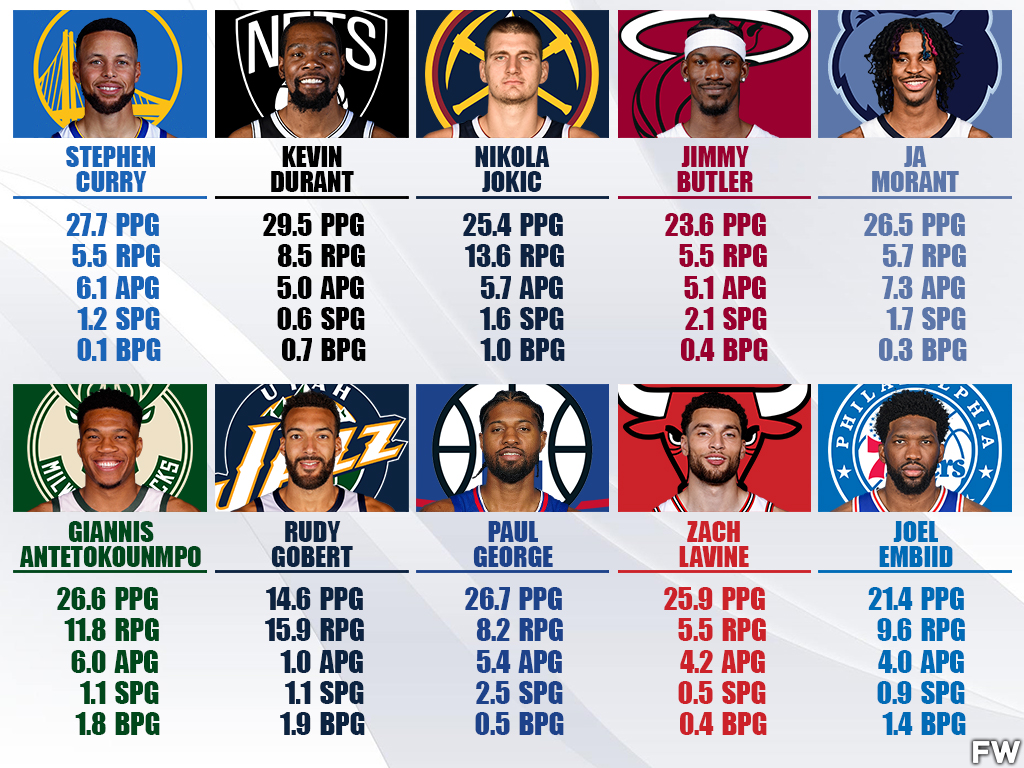 2021-2022 Statistics: 26.7 PPG, 8.2 RPG, 5.4 APG, 2.5 SPG, 0.5 BPG