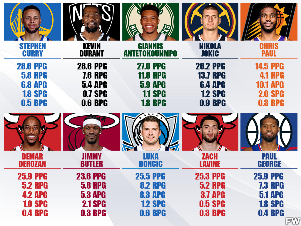 2021-22 NBA Stats: 28.6 PPG, 5.8 RPG, 6.8 APG, 1.8 SPG, 0.5 BPG