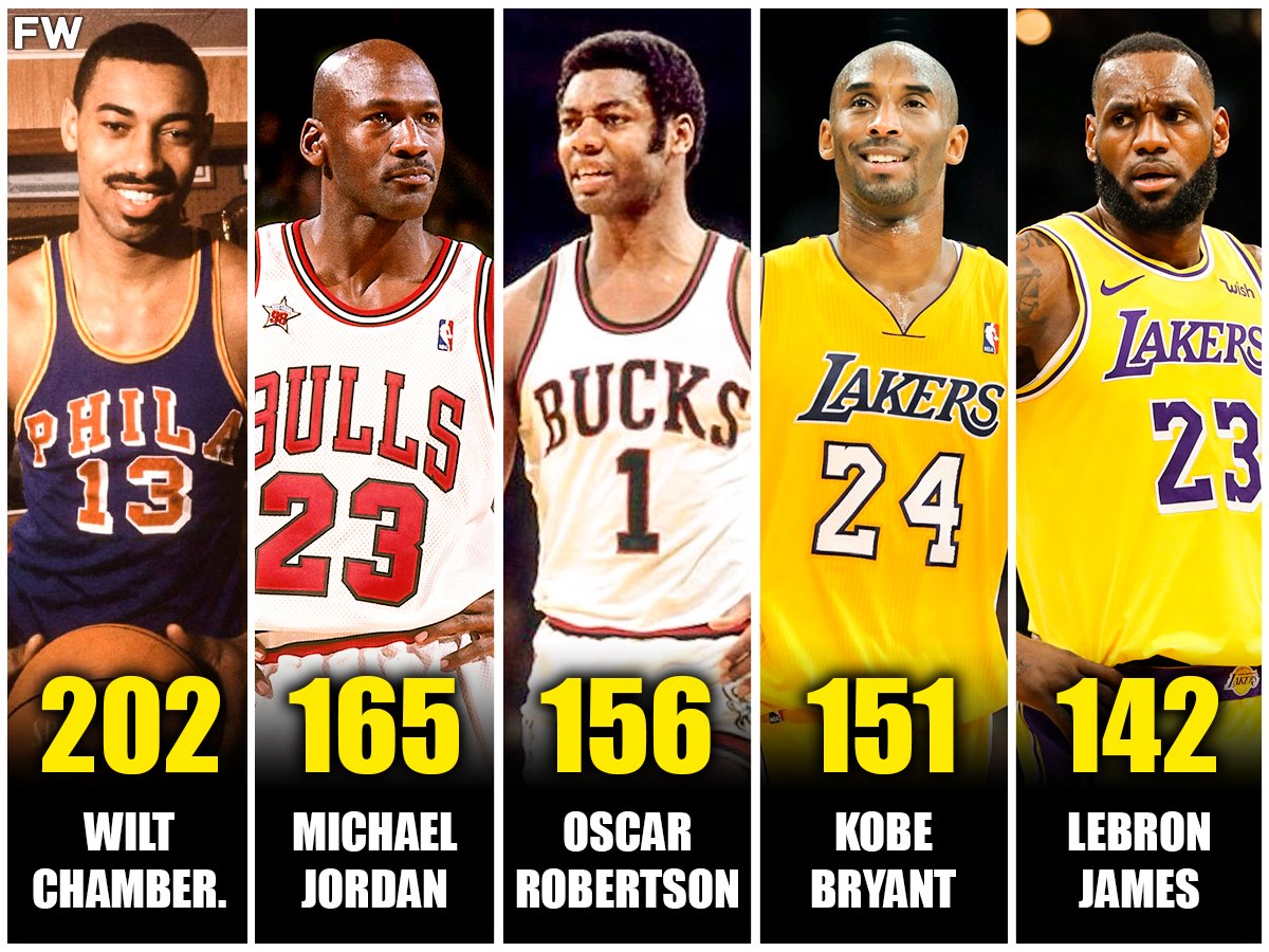 But which players have experienced this the most? Below is the list of players with the most 30+ points performances in losses in NBA history. Wilt Chamberlain tops the list with 202 games, followed by Michael Jordan with 165, Oscar Robertson with 156, Kobe Bryant with 151, and LeBron James with 142.