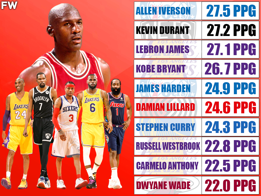 These are the 10 players who have scored the most PPG since Michael Jordan left the Chicago Bulls.