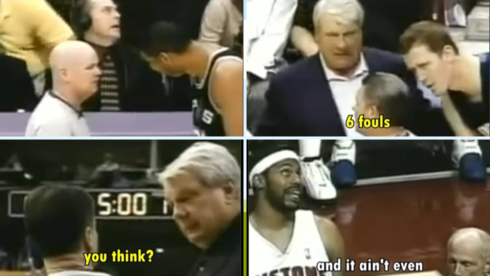 Multiple interactions were captured in a video compilation. It starts with Rasheed Wallace complaining about the number of fouls his team has received before switching to referee Joe Crawford not even knowing who Spurs’ player Devin Brown is.