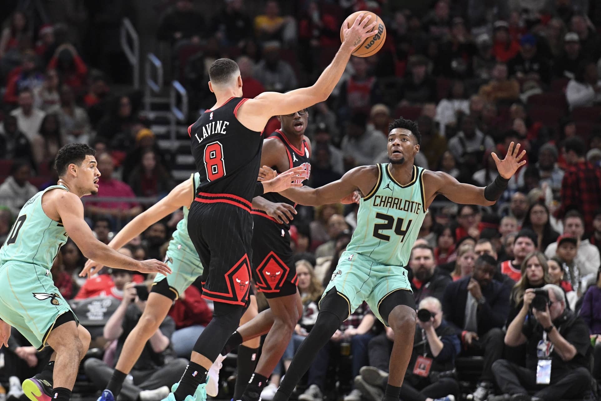 The Chicago Bulls went 10-43 (23.3% 3P), missing 33 three-point attempts, whereas the Charlotte Hornets went 18-60 (30.0% 3P), missing 42 three-point attempts.