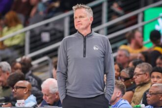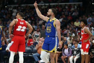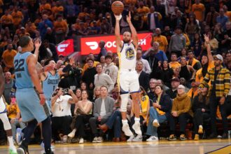 Draymond Green jokingly puts a Chinese basketball player in a headlock during a two-on-two game.