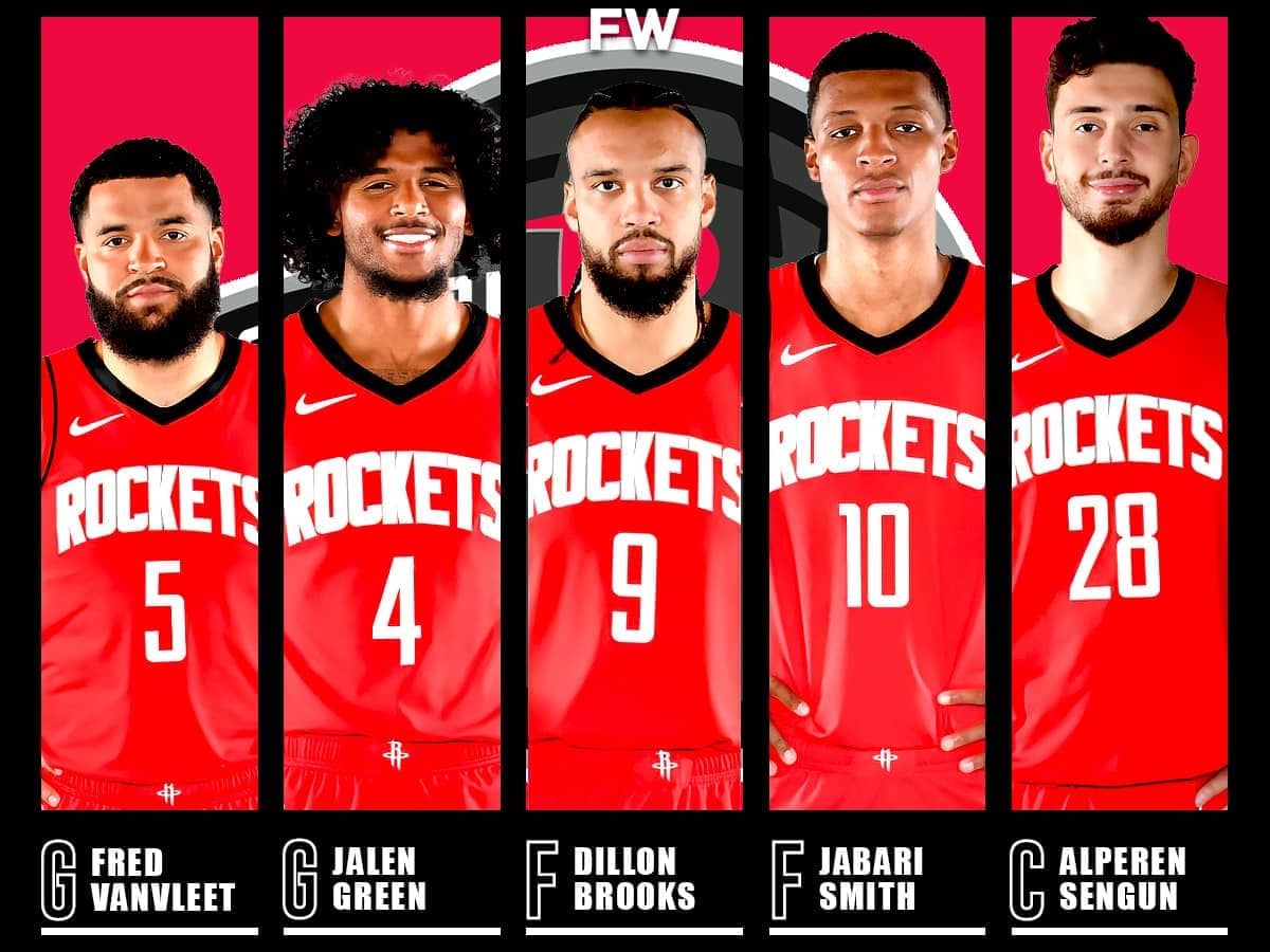 This group has already played 269 minutes together this season, putting up a strong +9.7 net rating. Defensively, they’re a wall with a 102.2 defensive rating, and offensively, they’re solid too with a rating of 111.8. VanVleet keeps things under control as the floor general, Brooks sets the defensive tone, Sengun runs the paint like a boss, and Green and Smith mix in athleticism and shooting to round it all out. It’s a lineup that works because everyone knows their role and plays off each other perfectly.
