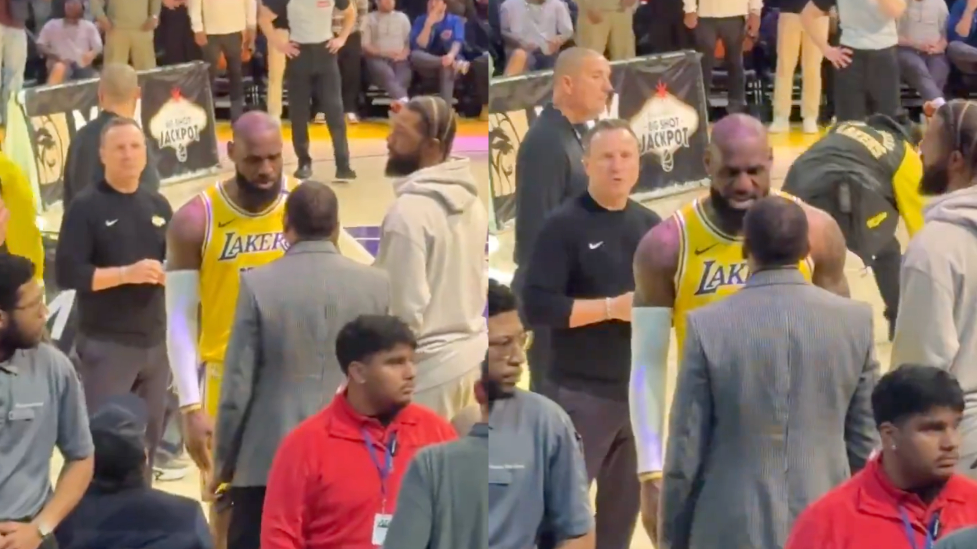 LeBron James confronted Stephen A. Smith during the Los Angeles Lakers–New York Knicks game last night in what looked to be a heated exchange. Some eagle-eyed fans did some detective work and deciphered that LeBron told the media mogul to keep his son, Bronny James, ‘out of it’, with the ‘it’ presumably being related to any critiques or comments he makes about him in the future.