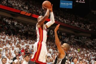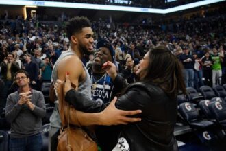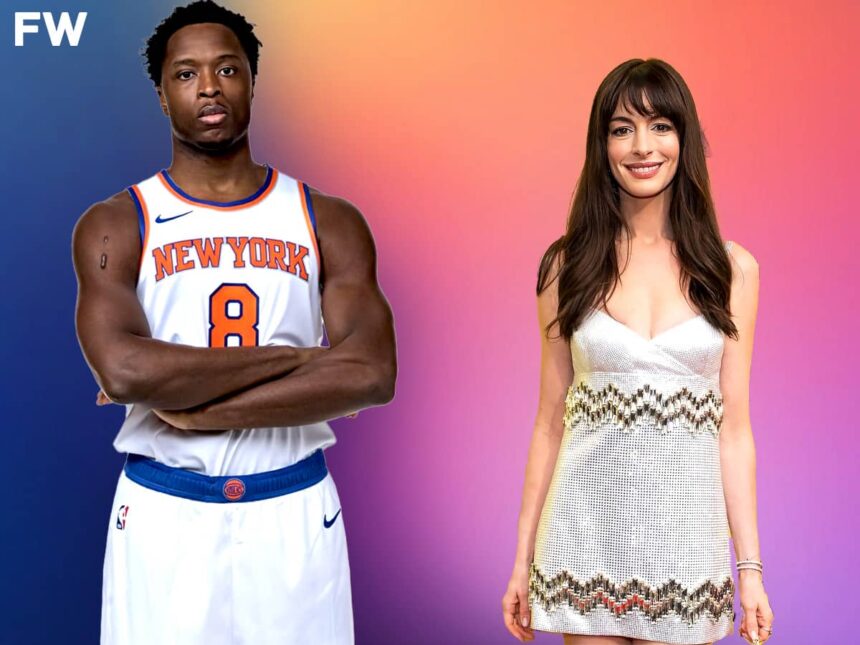 New York Knicks forward OG Anunoby nearly crashed into actor Anne Hathaway courtside during their…