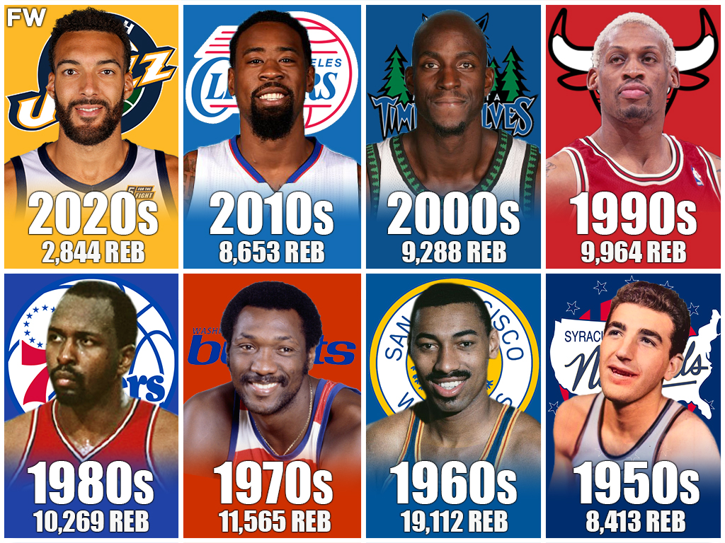 Yes, rebounding takes maximum effort in boxing out your man and timing your jump but take someone like Dennis Rodman, for example. He looked at rebounding as an art form. He would sit and study the rim for hours before games just to see the angles in which shots bounced off. As a result, he became arguably the greatest rebounder ever. Effort, skill, and IQ are all a part of rebounding, and the great rebounders of the game should be celebrated. As you will see below, each great rebounder was conducive to their team’s success as we travel throughout NBA history. Each decade is represented by the best of the best when it comes to rebounding.
