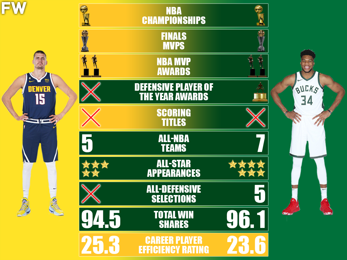 Nikola Jokic and Giannis Antetokounmpo may very well be considered the two best basketball players in the world. They share numerous similarities, such as being European-born, playing as power forwards or centers, and serving as the cornerstone players for their respective teams. Even in terms of championships and accolades, their records are remarkably close, and they are similar in age.