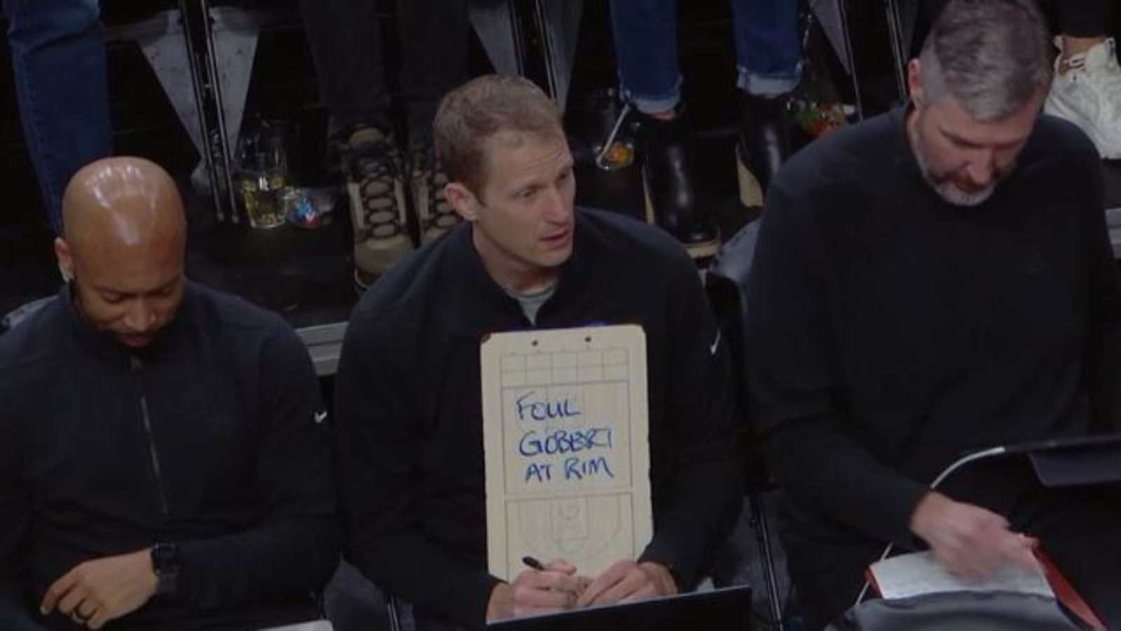It would appear that the Nuggets failed to follow a plan devised by the coaches for the game, as one of them was seen revealing their message to the players: “Foul Gobert At Rim.”