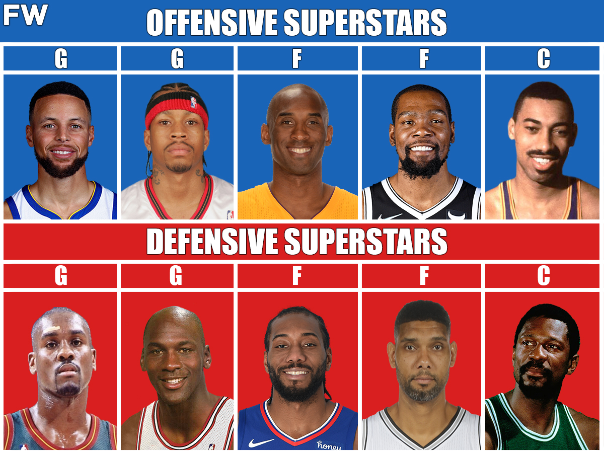 Does the offensive team have too much firepower? Or can the defensive team exhaust the superstar scoring talents to gain an advantage on the scorelines? By gathering the top five offensive talents and top-five defensive superstars in a 5-on-5 following the normal layout of three backcourt players and two frontcourt players, it is time to analyze which team comes out on top in a 7-game series. Of course, raw scoring power against the stopping ability of the best defenders will come into account in a close showdown that goes 7 games.