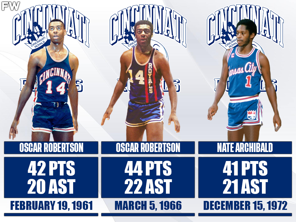 Here are the three performances in NBA history where at least 40 points and 20 assists were registered for their individual games. Importantly, only two players have ever managed to achieve this feat, and their names are Oscar Robertson and Nate “Tiny” Archibald.