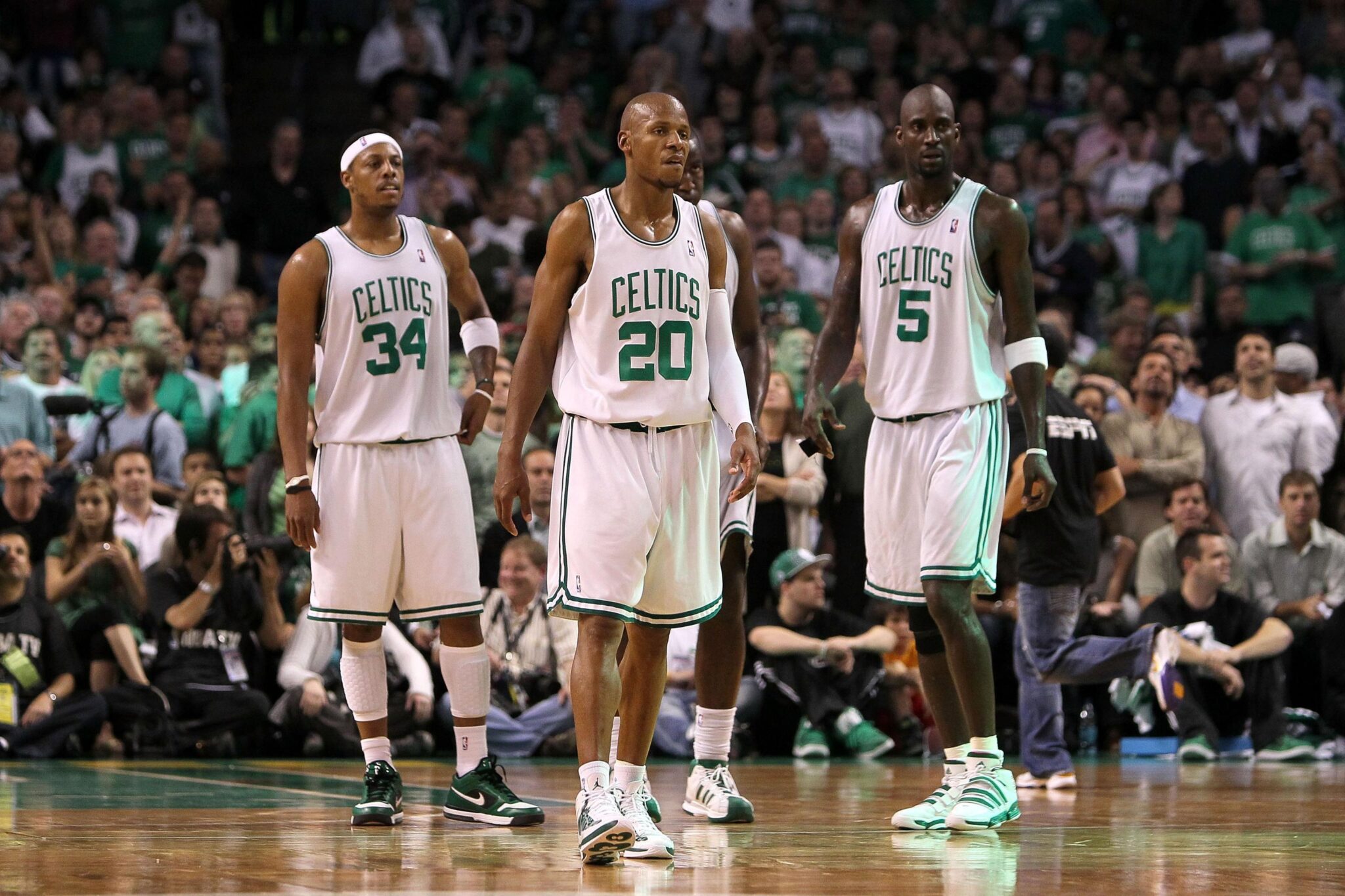 The Boston Celtics big 3 of Paul Pierce, Ray Allen, and Kevin Garnett won a championship together in 2008. It was the first season the trio played together, and their win in the Finals marked the Boston Celtics’ 17th championship.