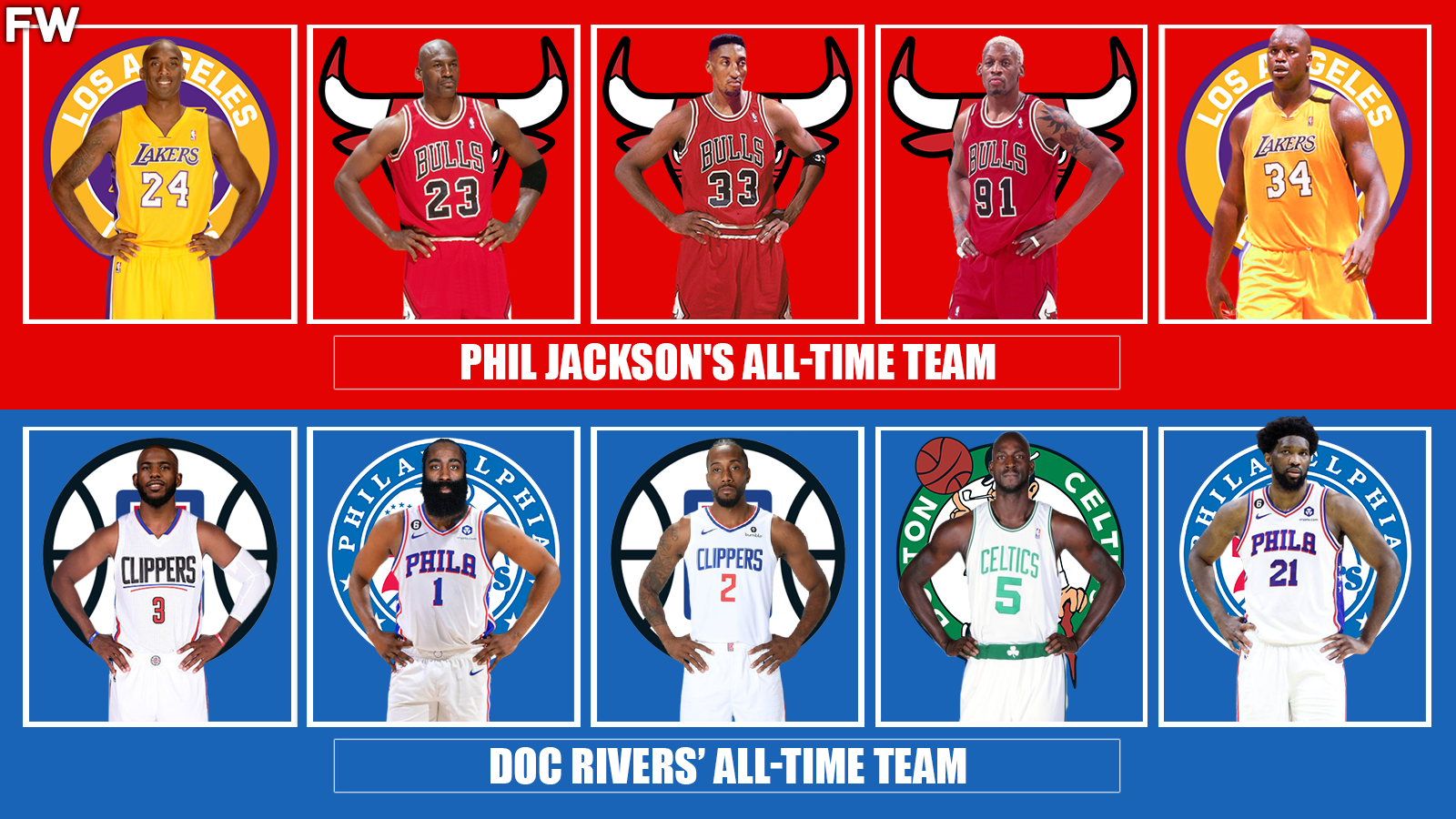 We have already seen how Phil Jackson’s All-Time Team came out on top against Steve Kerr’s All-Time Team, but how would the legendary Bulls and Lakers coach’s players come out against Doc Rivers’ All-Time Team featuring legends from the Boston Celtics, Los Angeles Clippers, and Philadelphia 76ers? Let’s find out.