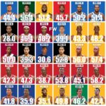 Note: The Boston Celtics, Washington Wizards, Denver Nuggets, San Antonio Spurs, Utah Jazz, and Sacramento Kings are excluded from this ranking as there aren’t enough players currently on NBA rosters.