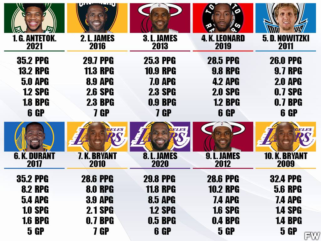 For similar reasons to Kevin Durant, Leonard’s first Finals MVP is ranked near the bottom. Leonard played with Tim Duncan, Tony Parker, and Manu Ginobili. While these three were in the later stages of their career, these were proven championships that had already won three titles together. Leonard, who was in the younger stages of his career, won this title primarily because of the defense he played on LeBron James.