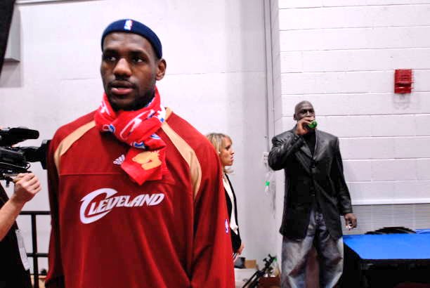 LeBron James and Michael Jordan holding court prior to the Slam Dunk contest. (2007)