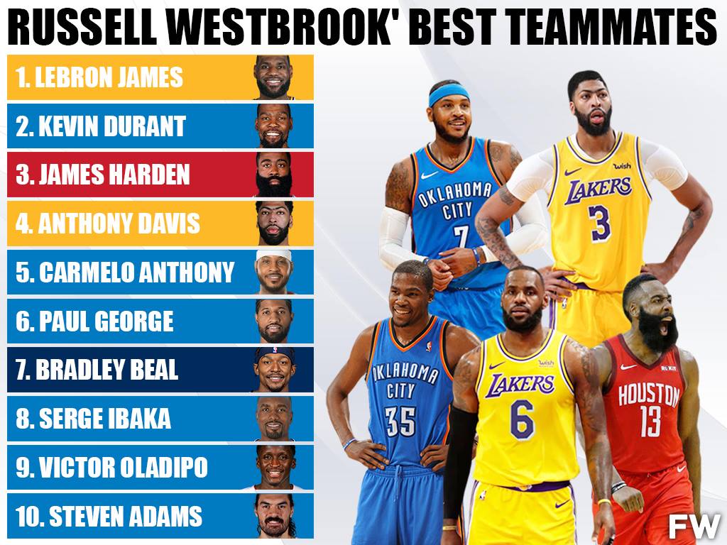 But Anthony was supposed to be the third superstar to be paired with Russell Westbrook and Paul George in Oklahoma City, and he was at times. The trio did not quite work out as Anthony could not accept a bit-part role in the offense led by Westbrook and George, although he still averaged 16.2 PPG. Anthony was not at his best playing with Westbrook, but in terms of talent and all-time status, he is easily top-4 on Westbrook’s list of teammates.
