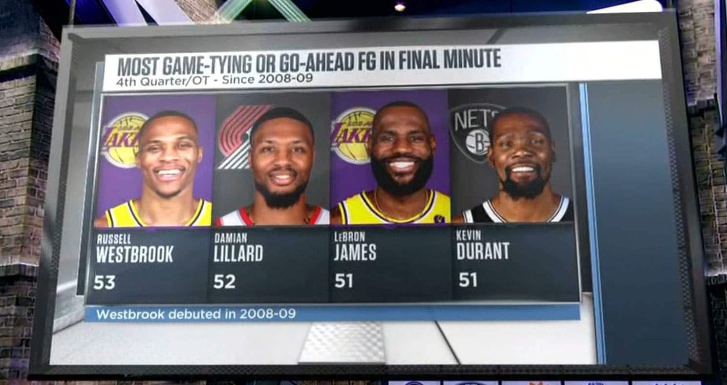 Well, here’s one stat that will shock the NBA community, given how things have turned out in the 2021-22 season so far. Russell Westbrook has the most game-tying or go-ahead shots in the final minute among all active NBA players since the 2008-09 season.