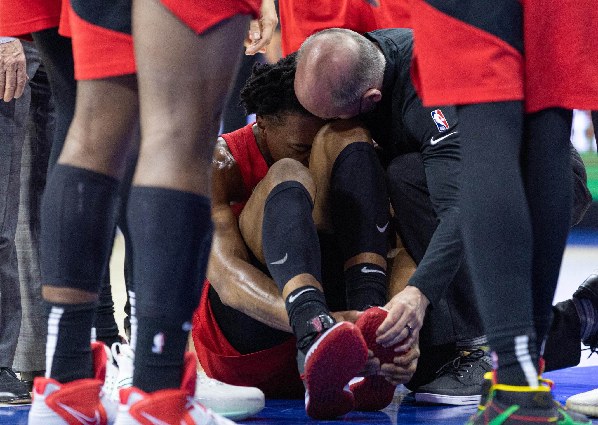 Scottie Barnes was helped off the court to the locker room after Joel Embiid stepped on his foot in the 4th quarter. pic.twitter.com/HzlZj3vh9I