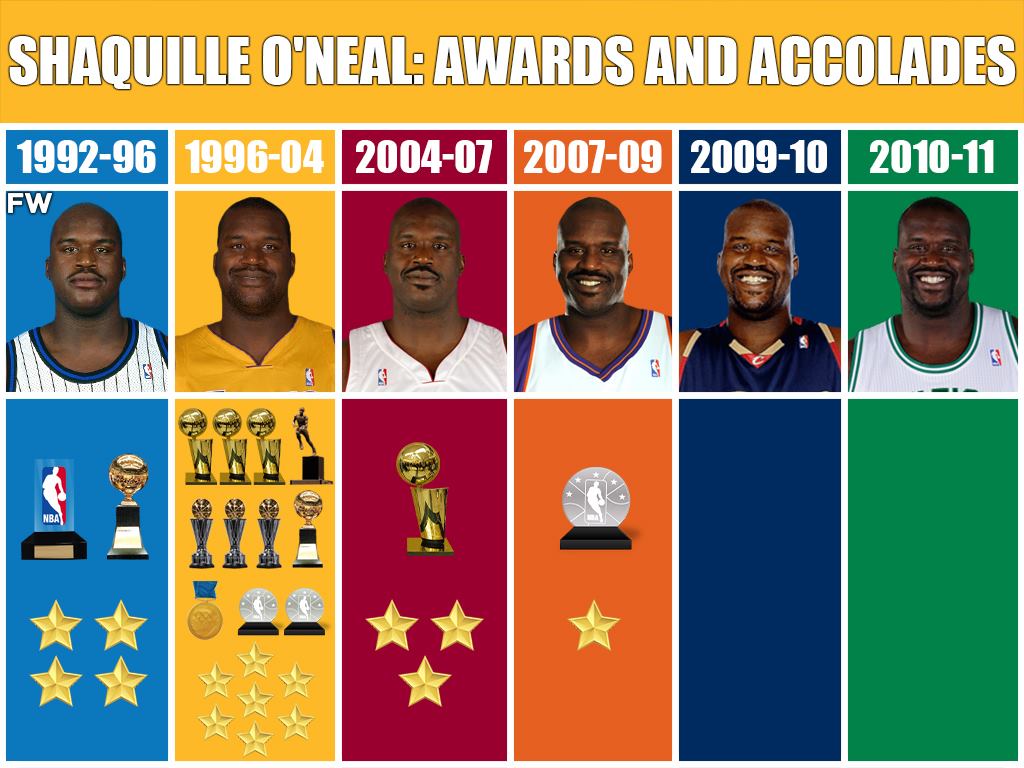 In fact, if you took Shaq’s periods and took them away from the rest, he’d still have, at least, two careers worthy of making it to the Hall of Fame. That’s why today, we’re going to walk you through all the awards and accolades he piled up throughout his career: