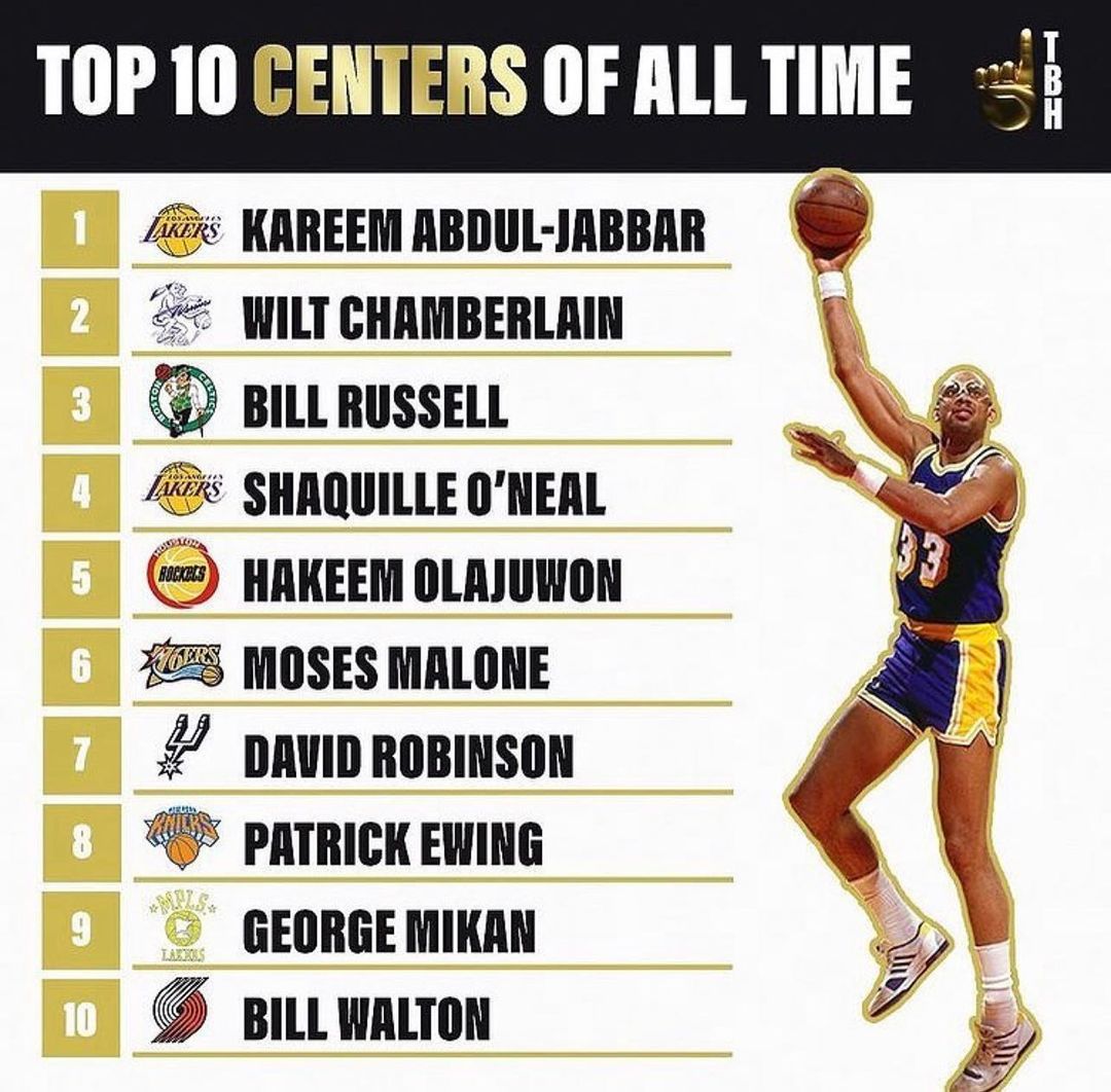 Ahead of Shaq, the Instagram page “thebesthighlights” ranked Kareem Abdul-Jabbar, Wilt Chamberlain, and Bill Russell as 1st, 2nd, and 3rd, respectively.