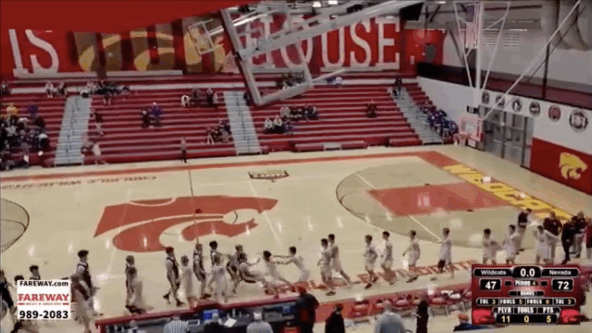The Nevada Cubs beat the Carlisle Wildcats, 72-47, in an Iowa high school basketball game on Tuesday night. During the handshake line after the game a Carlisle player attacked the player leading the Nevada handshake line. First he hit him in the body and then appeared to knock him out with a punch to the face.