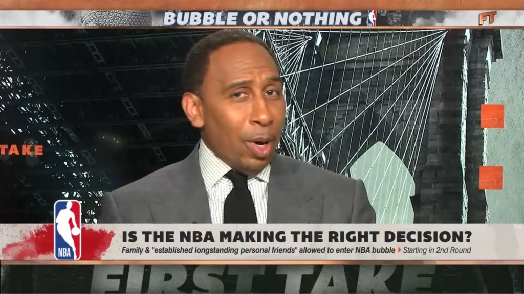 Not everybody is happy with these rules, including ESPN’s Stephen A. Smith, who made the case for players to receive visitors in the bubble, even if they aren’t close friends or people they have known for years. On Thursday’s edition of First Take, Smith said: