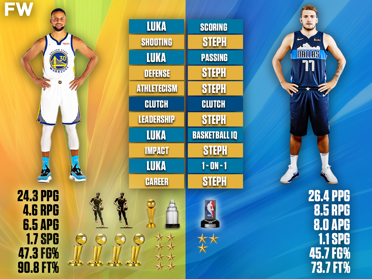 Luka is an improving shooter and can certainly stroke the ball when he is in a rhythm, but he is more of a streaky shooter who needs to take shots at a higher volume to be effective. Maybe one day, Luka can get close to shooting 40% from three, but he is not the marksman that Steph is, and that is obvious from the numbers and also from watching Dallas Mavericks games. Curry gains the edge with ease as he does with any other player.