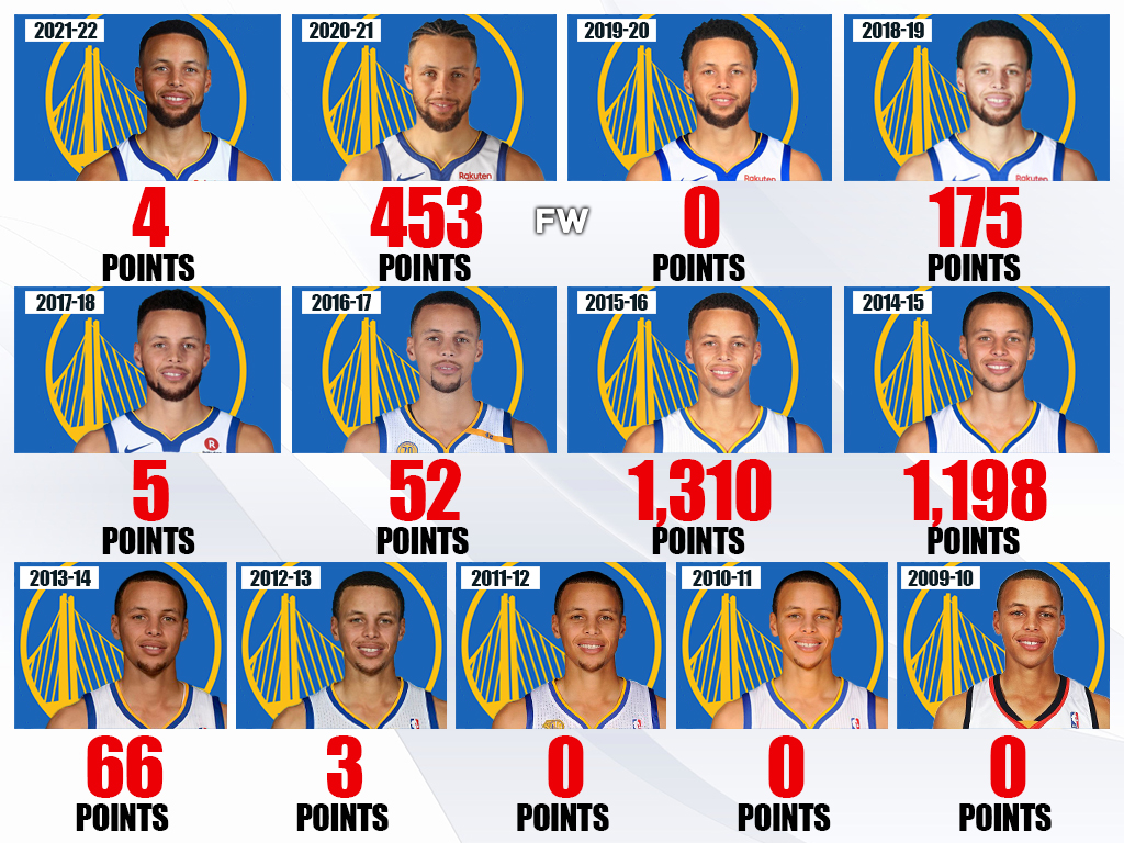 Back to being healthy was the name of the game for Curry. With full movement, he was a top-5 player in the league again. During the season, Curry made at least five three-point field goals in the first seven games of the season. It broke a record set by George McCloud of six games during the 1995-96 season. Injuries briefly struck Curry when a groin ailment sidelined him for 11 games.