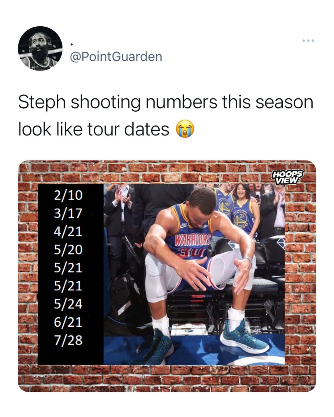 “Steph shooting numbers this season look like tour dates,” @pointguarden tweeted.