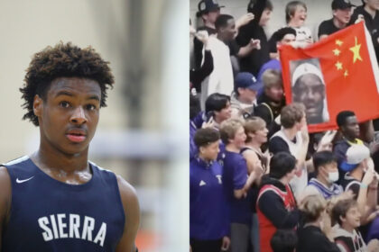 Crowd Crosses The Line And Bull Bronny James With LeBron Crying Meme On China Flag